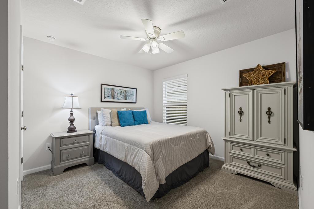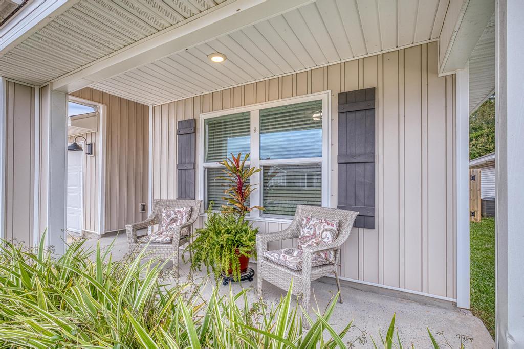 The private primary suite includes a generous walk-in closet and a well-appointed bathroom. Three additional bedrooms provide flexibility for family, guests, or a dedicated office. Outdoors, a covered patio creates an easy extension of the living space, overlooking a manageable backyard suited to low-maintenance living. The home’s modern finishes and well-kept condition make it truly move-in ready.